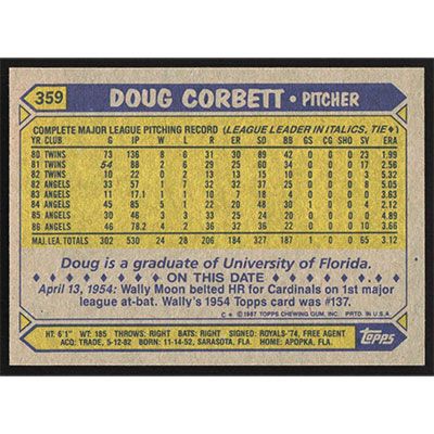 This is a 1987 Topps Doug Corbett baseball card. The card is #359 and pictures show condition.