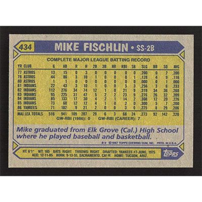 This is a 1987 Topps Mike Fischlin baseball card. The card is #434 and pictures show condition.