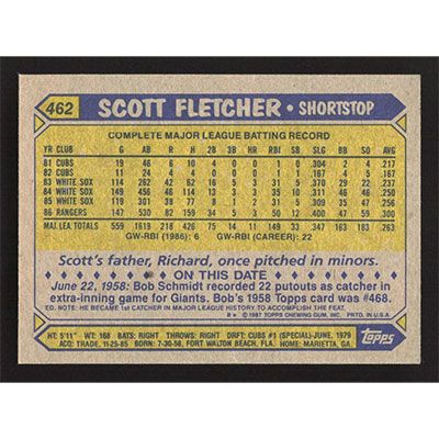 This is a 1987 Topps Scott Fletcher baseball card. The card is #462 and pictures show condition.