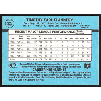 This is a 1988 Donruss Tim Flannery baseball card. The card is #328 and pictures show condition.