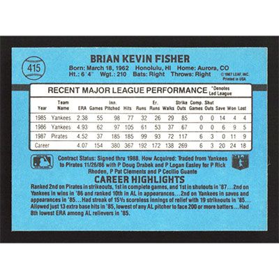 This is a 1988 Donruss Brian Fisher baseball card. The card is #415 and pictures show condition.