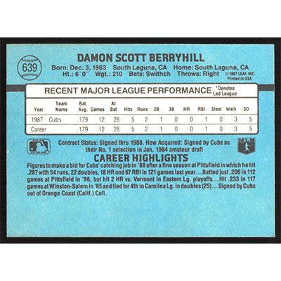 This is a 1988 Donruss Damon Berryhill baseball card. The card is #639 and pictures show condition.