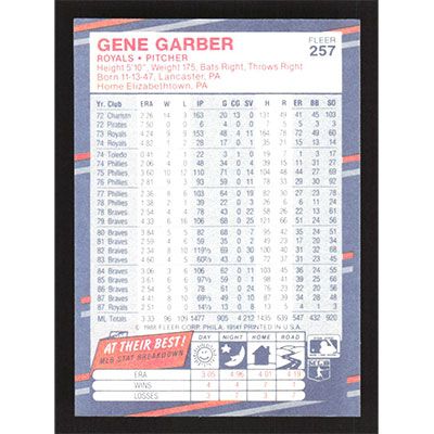 This is a 1988 Fleer Gene Garber baseball card. The card is #257 and pictures show condition.