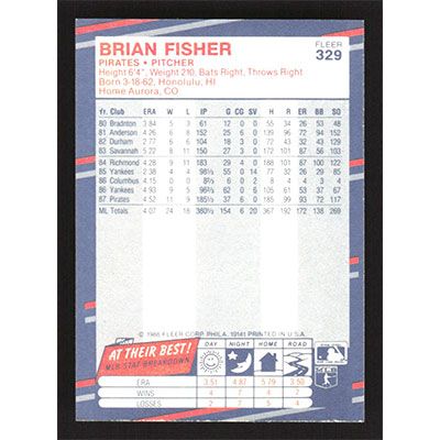 This is a 1988 Fleer Brian Fisher baseball card. The card is #329 and pictures show condition.