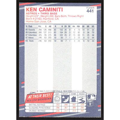 This is a 1988 Fleer Ken Caminiti baseball card. The card is #441 and pictures show condition.