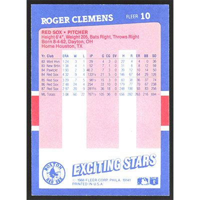 This is a 1988 Fleer Exciting Stars Roger Clemens baseball card. The card is #10 and pictures show condition.
