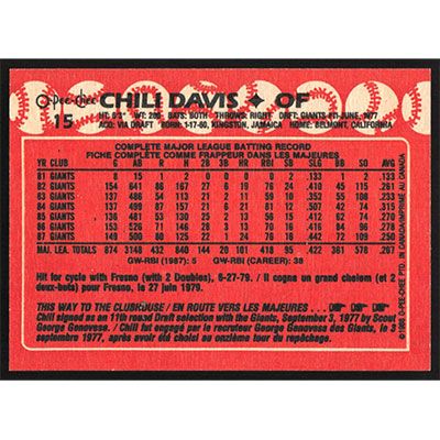 This is a 1988 O-Pee-Chee Chili Davis baseball card. The card is #15 and pictures show condition.