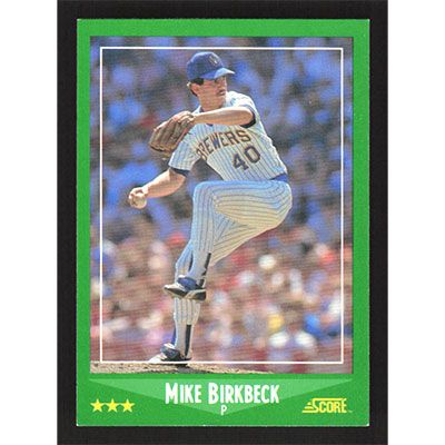 This is a 1988 Score Mike Birkbeck baseball card. The card is #369 and pictures show condition.