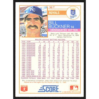 This is a 1988 Score Rookie/Traded Bill Buckner baseball card. The card is #36T and pictures show condition.
