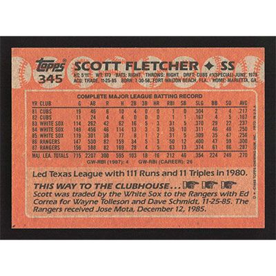 This is a 1988 Topps Scott Fletcher baseball card. The card is #345 and pictures show condition.