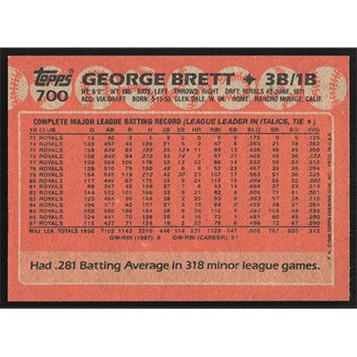 This is a 1988 Topps George Brett baseball card. The card is #700 and pictures show condition.
