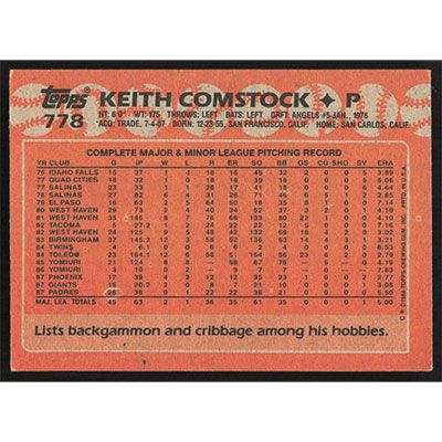 This is a 1988 Topps Keith Comstock baseball card. The card is #778 and pictures show condition.