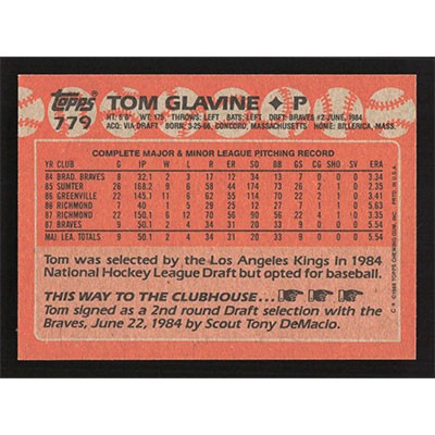 This is a 1988 Topps Tom Glavine baseball card. The card is #779 and pictures show condition.