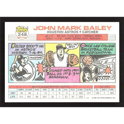 This is a 1988 Topps Big Mark Bailey baseball card. The card is #248 and pictures show condition.