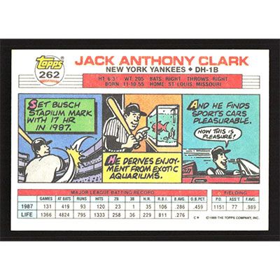 This is a 1988 Topps Big Jack Clark baseball card. The card is #262 and pictures show condition.