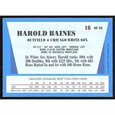 This is a 1988 Topps Rite-Aid Team MVP's Harold Baines baseball card. The card is #16 and pictures show condition.
