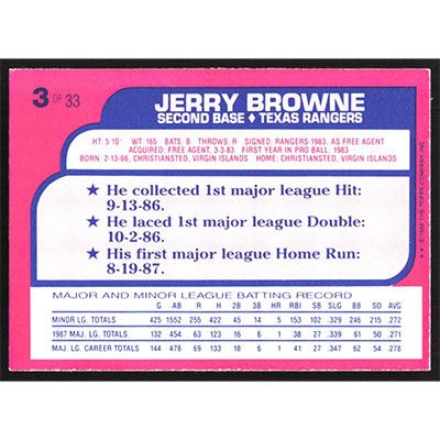 This is a 1988 Topps Toys 'R' Us Rookies Jerry Browne baseball card. The card is #3 and pictures show condition.