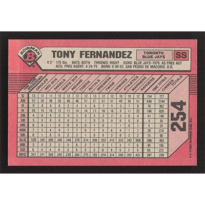 This is a 1989 Bowman Tony Fernandez baseball card. The card is #254 and pictures show condition.