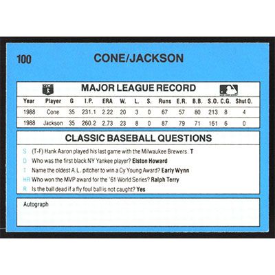 This is a 1989 Classic Light Blue David Cone and Danny Jackson baseball card. The card is #100 and pictures show condition. Team(s): New York Mets/Cincinnati Reds