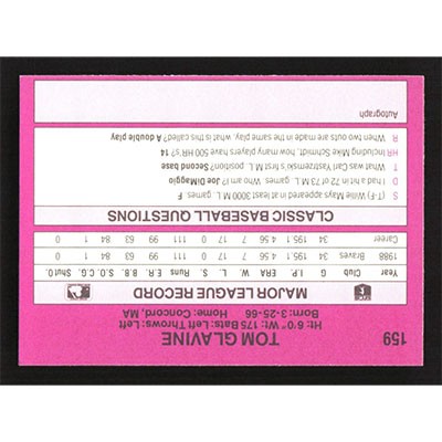 This is a 1989 Classic Travel Purple Tom Glavine baseball card. The card is #159 and pictures show condition.