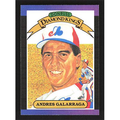 This is a 1989 Donruss Andres Galarraga Diamond Kings baseball card. The card is #14 and pictures show condition.