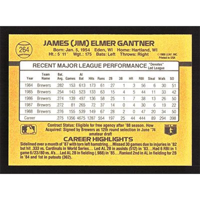 This is a 1989 Donruss Jim Gantner baseball card. The card is #264 and pictures show condition.