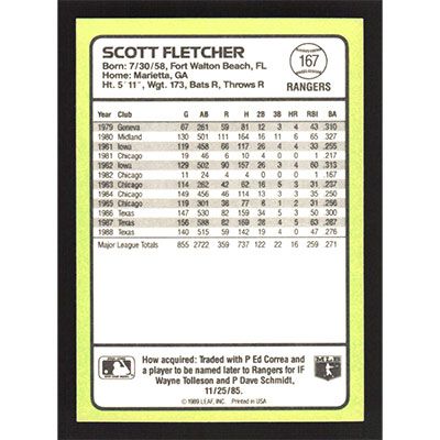 This is a 1989 Donruss Baseball's Best Scott Fletcher baseball card. The card is #167 and pictures show condition.