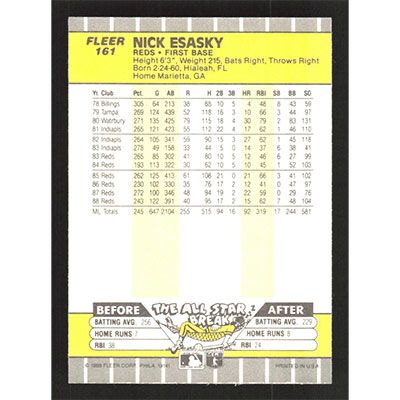 This is a 1989 Fleer Nick Esasky baseball card. The card is #161 and pictures show condition.