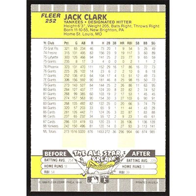 This is a 1989 Fleer Jack Clark baseball card. The card is #252 and pictures show condition.