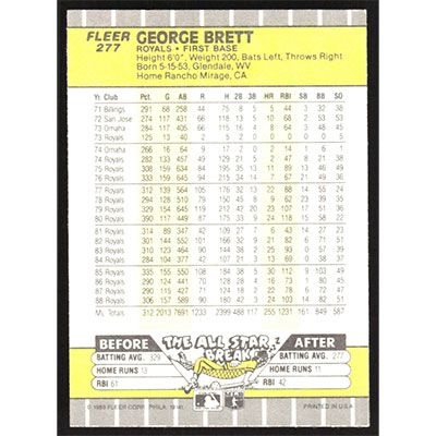This is a 1989 Fleer George Brett baseball card. The card is #277 and pictures show condition.