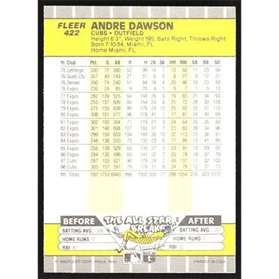 This is a 1989 Fleer Andre Dawson baseball card. The card is #422 and pictures show condition.