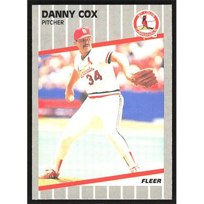 This is a 1989 Fleer Danny Cox baseball card. The card is #447 and pictures show condition.