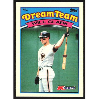This is a 1989 K-Mart Will Clark baseball card. The card is #23 and pictures show condition.