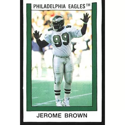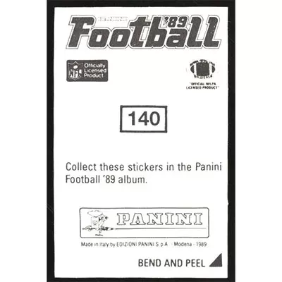 This is a 1989 Panini Stickers Jerome Brown football card. The card is #140 and pictures show condition.
