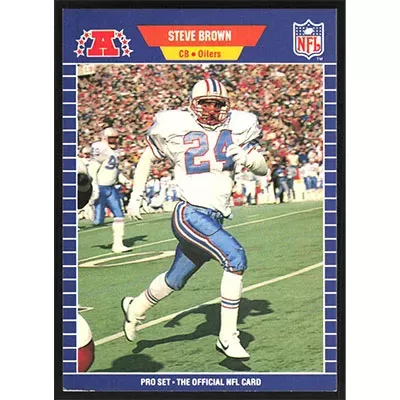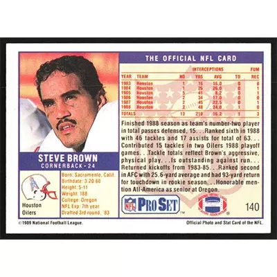 This is a 1989 Pro Set Steve Brown football card. The card is #140 and pictures show condition.