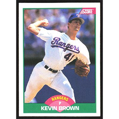 This is a 1989 Score Rookie/Traded Kevin Brown baseball card. The card is #89T and pictures show condition.