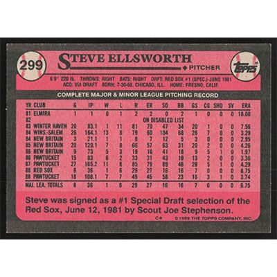 This is a 1989 Topps Steve Ellsworth baseball card. The card is #299 and pictures show condition.