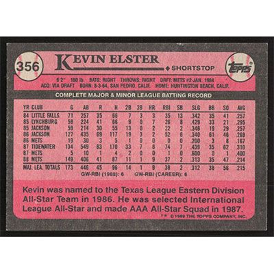 This is a 1989 Topps Kevin Elster baseball card. The card is #356 and pictures show condition.