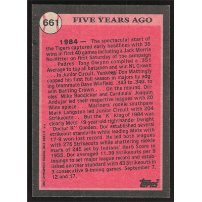 This is a 1989 Topps Dwight Gooden Turn Back the Clock - 1984 baseball card. The card is #661 and pictures show condition.