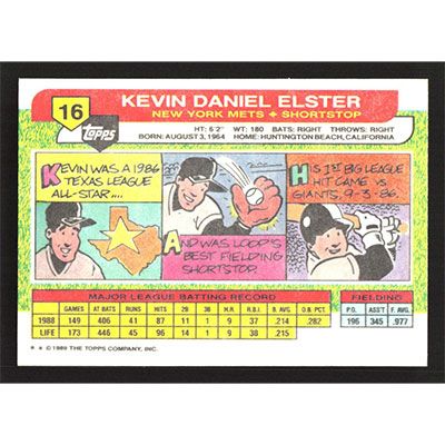 This is a 1989 Topps Big Kevin Elster baseball card. The card is #16 and pictures show condition.