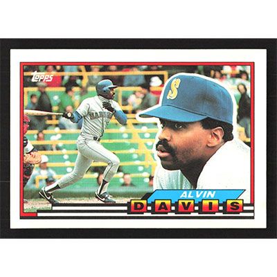 This is a 1989 Topps Big Alvin Davis baseball card. The card is #218 and pictures show condition.