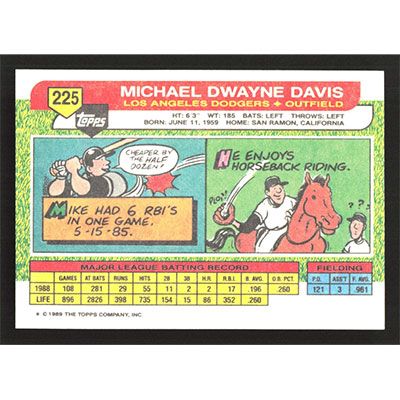 This is a 1989 Topps Big Mike Davis baseball card. The card is #225 and pictures show condition.