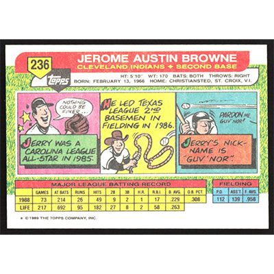 This is a 1989 Topps Big Jerry Browne baseball card. The card is #236 and pictures show condition.
