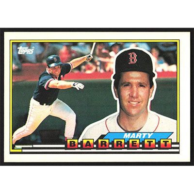 This is a 1989 Topps Big Marty Barrett baseball card. The card is #278 and pictures show condition.