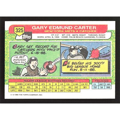 This is a 1989 Topps Big Gary Carter baseball card. The card is #325 and pictures show condition.