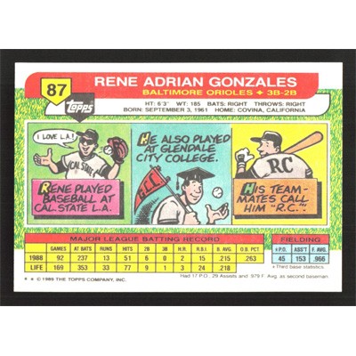 This is a 1989 Topps Big Rene Gonzales baseball card. The card is #87 and pictures show condition.