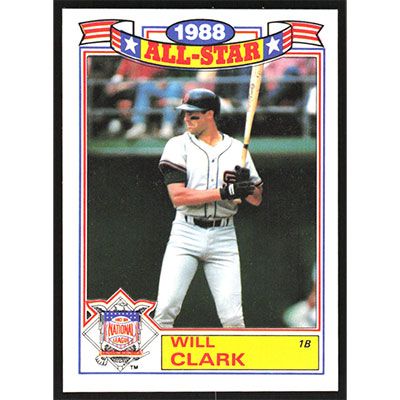 This is a 1989 Topps Glossy All-Stars Will Clark baseball card. The card is #13 and pictures show condition.