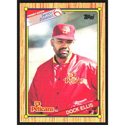This is a 1989 Topps Senior League Dock Ellis baseball card. The card is #116 and pictures show condition.