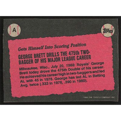 This is a 1989 Topps Wax Box Cards George Brett baseball card. The card is #A and pictures show condition.