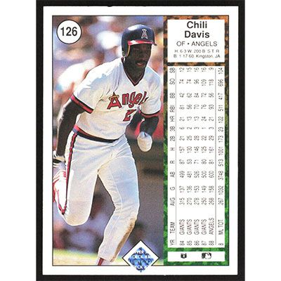 This is a 1989 Upper Deck Chili Davis baseball card. The card is #126 and pictures show condition.